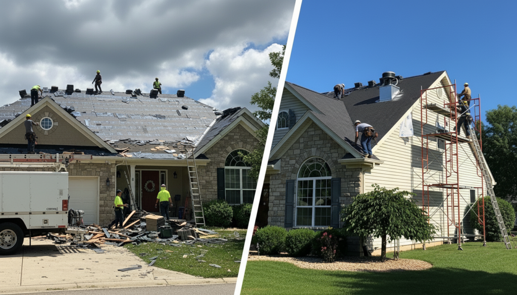 • Architectural Shingle Roof Replacement: Installation of high-performance asphalt shingle systems, complete with advanced synthetic underlayment and starter strips for maximum wind resistance.